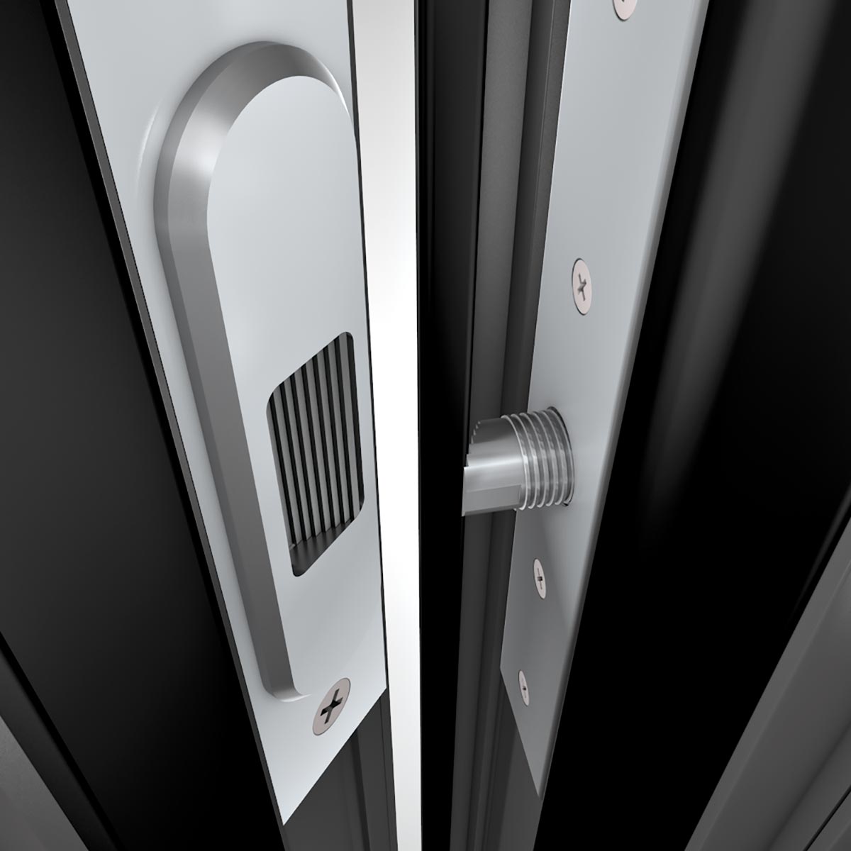 Die ATRIS-style Türen wirken in ihrem dreidimensionalen Design fast schwerelos. Die besondere Tiefenwirkung und die schwebend wirkenden Türgriffe setzen neue Maßstäbe bei der Gestaltung Ihres Eingangsbereichs. Die zurückgesetzten Füllungen und die asymmetrischen Lichtausschnitte sind ein eleganter Hingucker auf Ihrer neuen Haustür.