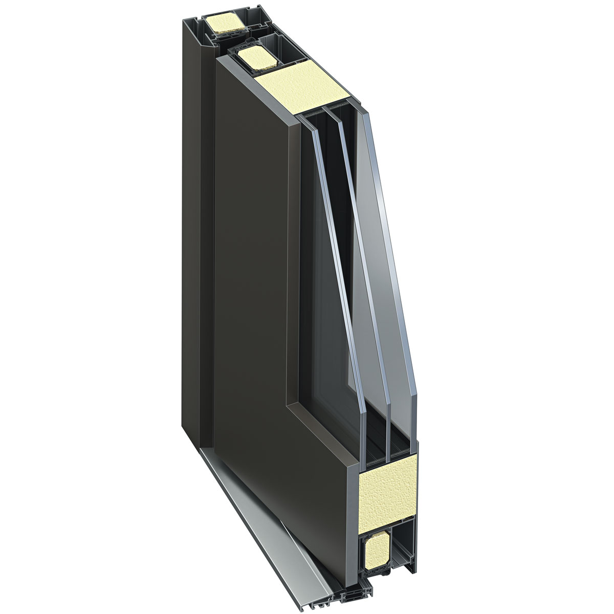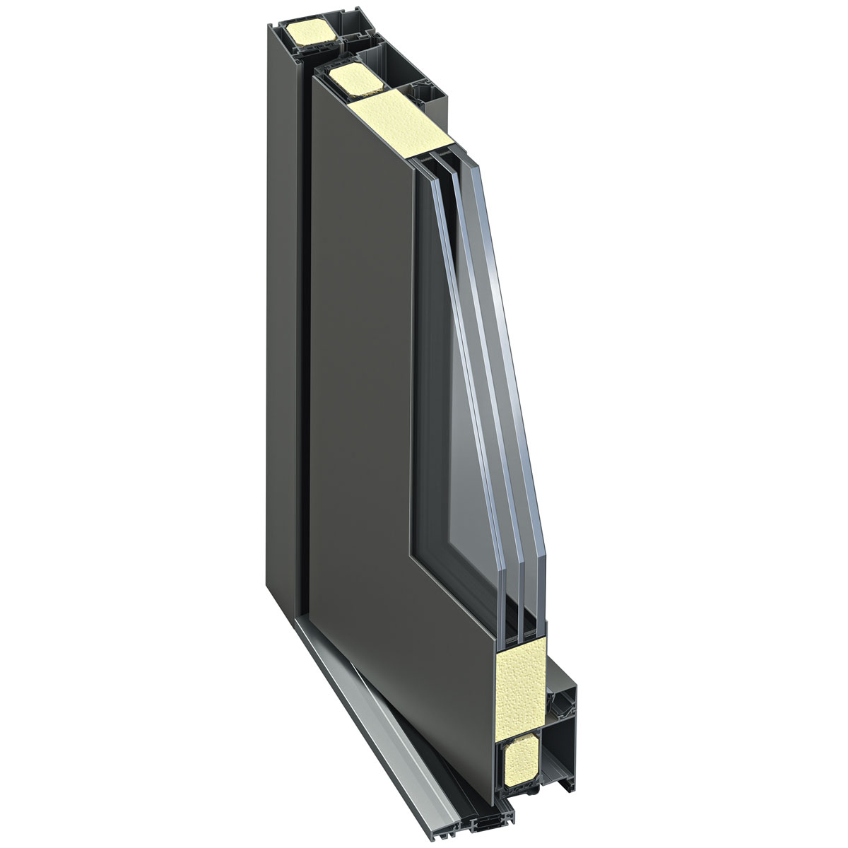 - Thermoplus-Dämmung: Ausgeklügelte Kammergeometrie des Profilsystems, gepaart mit Wärmedämmschaum, reduziert Wärmebrücken auch im Eckbereich