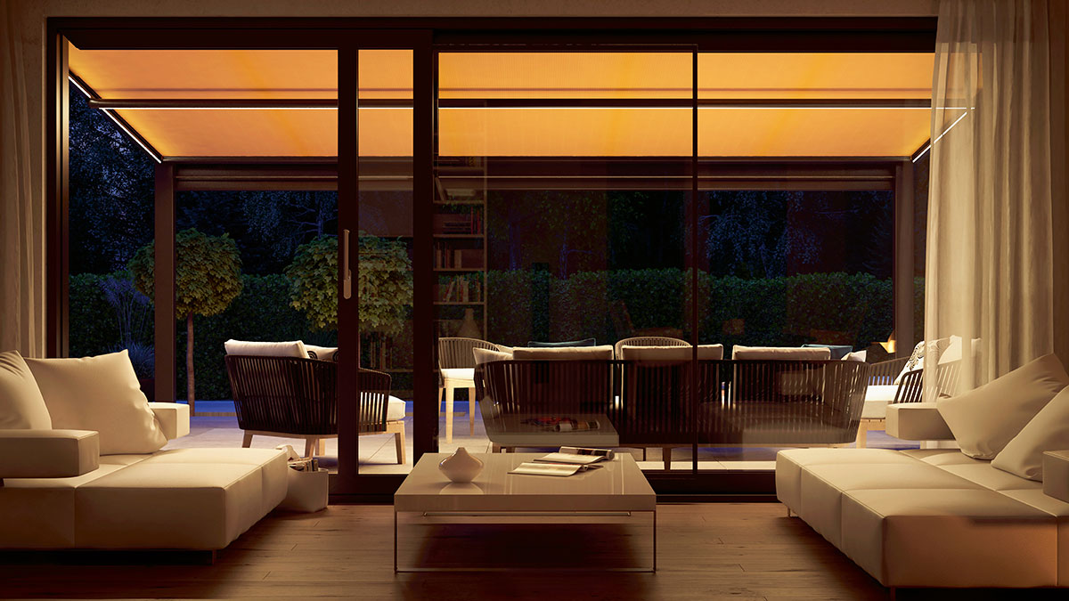 Optionale LED-Beleuchtung für Unterglasmarkisen